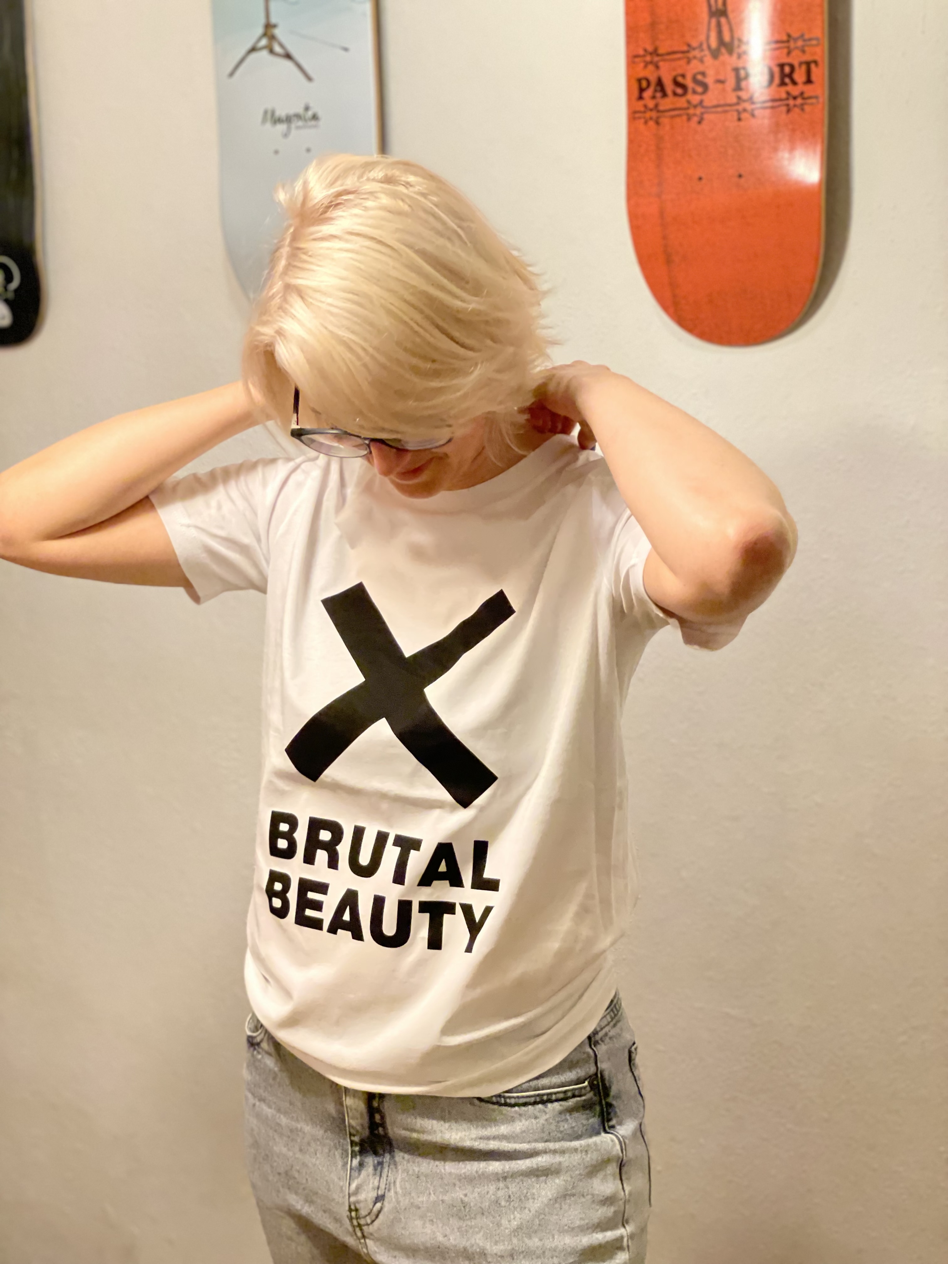 Our classic T-Shirt in white! This Brutal Beauty has been with us since day one.